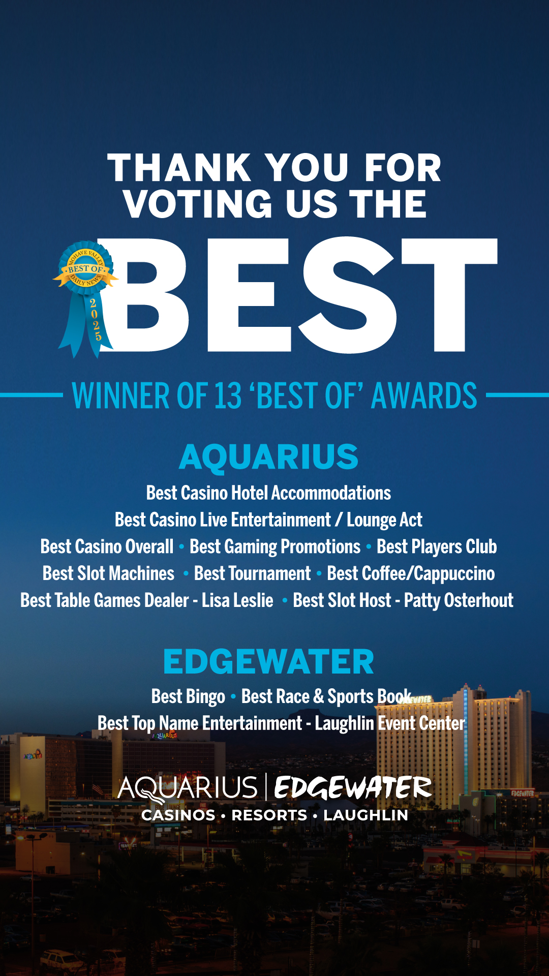 Situated on the west bank of the Colorado River, the Edgewater Casino Resort is a vibrant blend of gaming excitement, spectacular live entertainment and great dining.